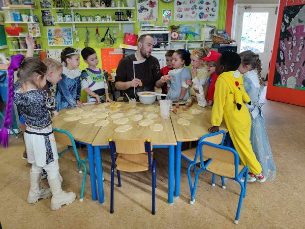 A l’implantation du Dolberg, le pâtissier Louis Nicolas est venu travailler avec les enfants; ensemble, ils ont préparé pains au chocolat, …